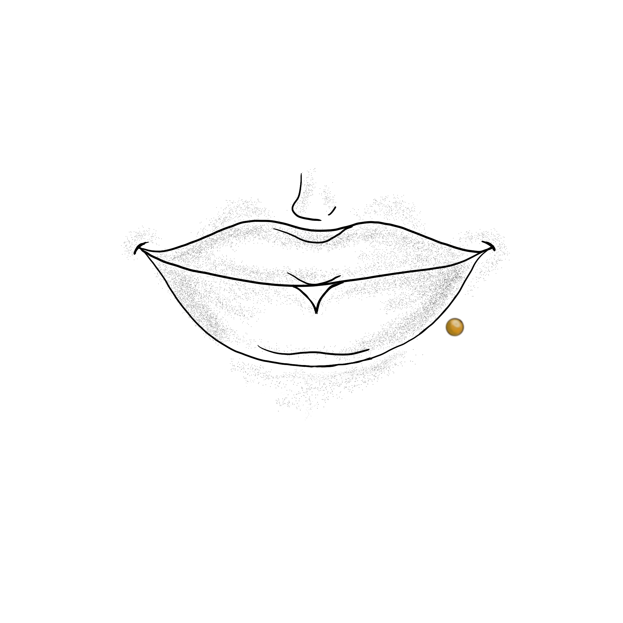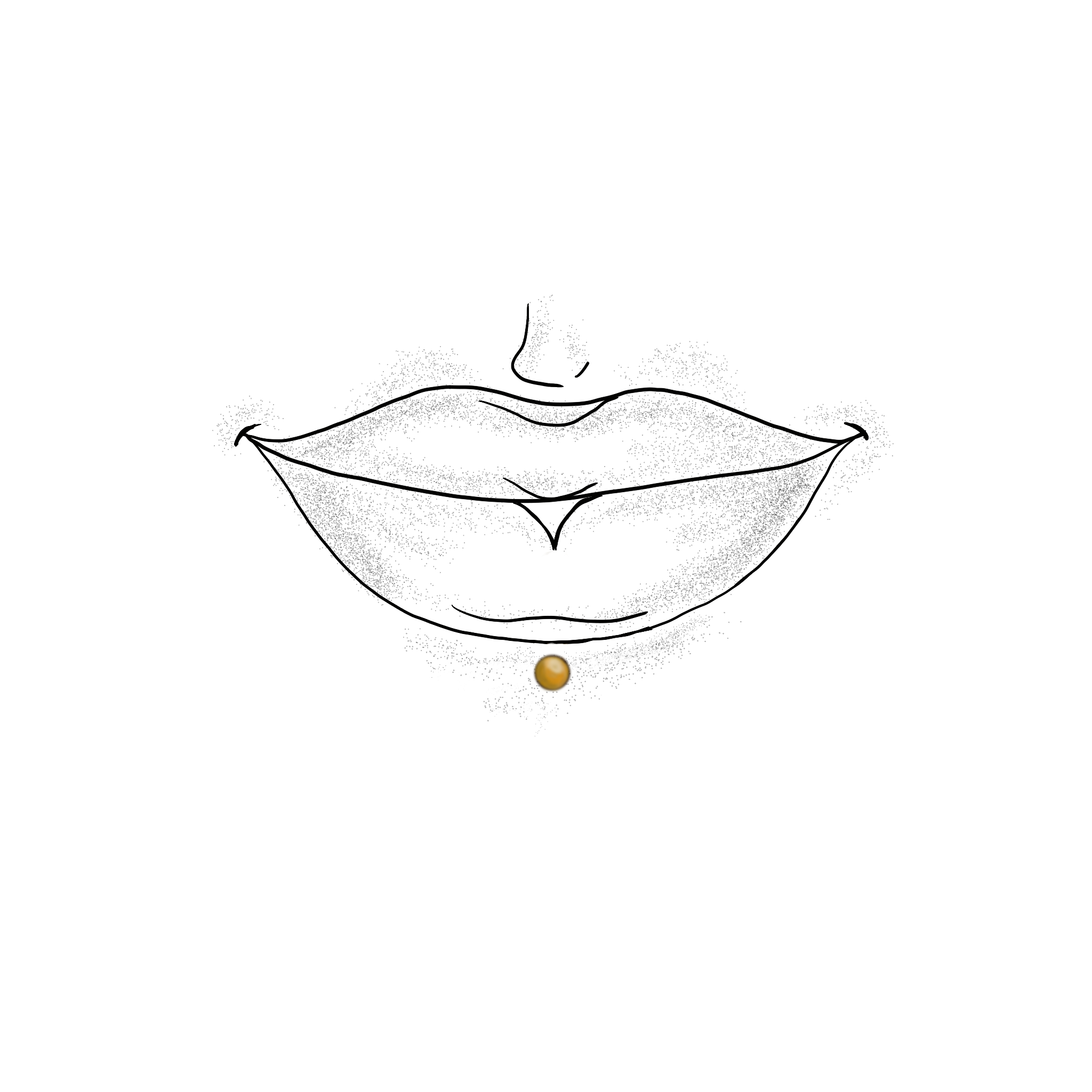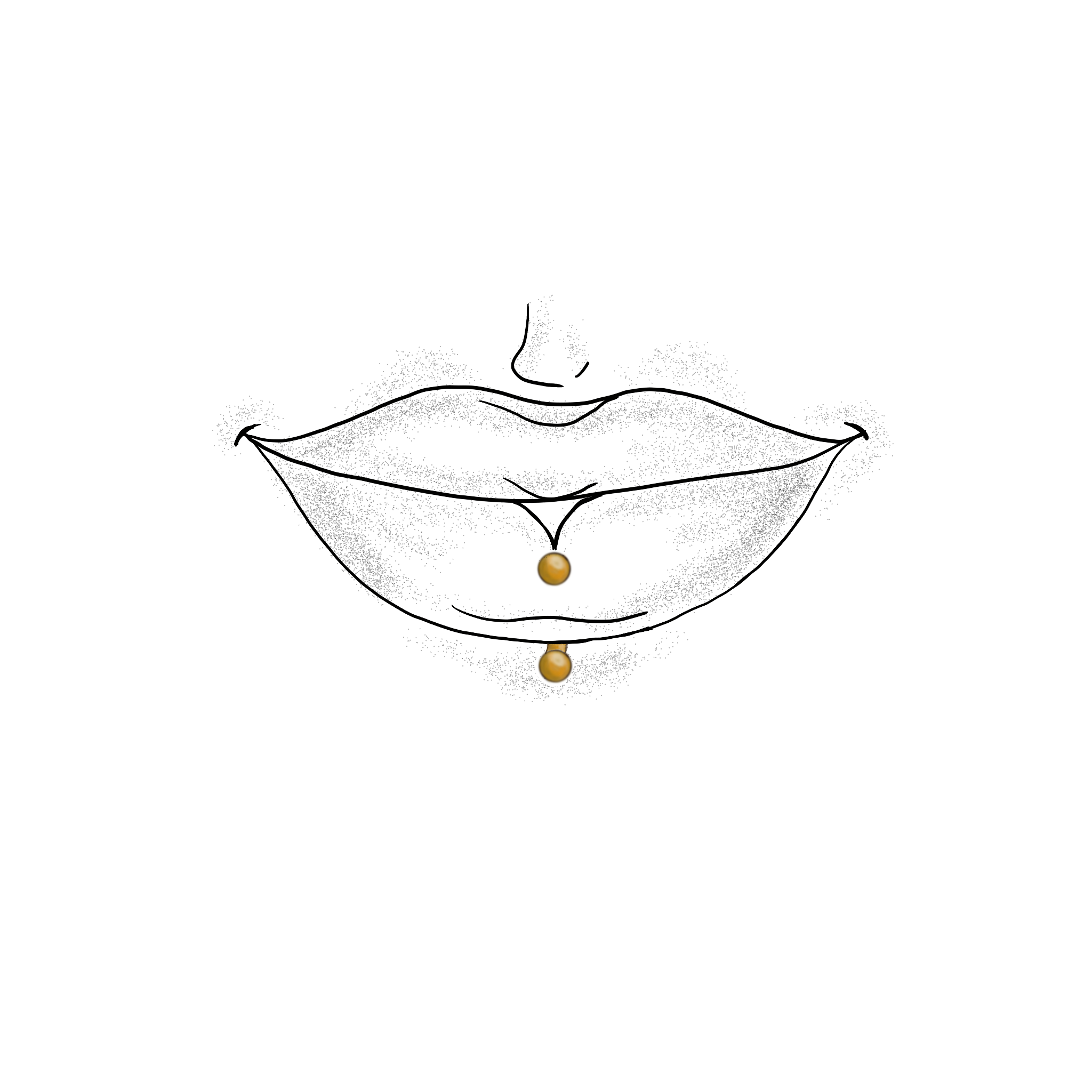 Das Unterlippenpiercing wird klassisch unterhalb der Unterlippe gestochen, entweder mittig oder seitlich. Es kann je nach Vorliebe mit einem Ring oder einem Labret-Stecker ausgestattet werden.