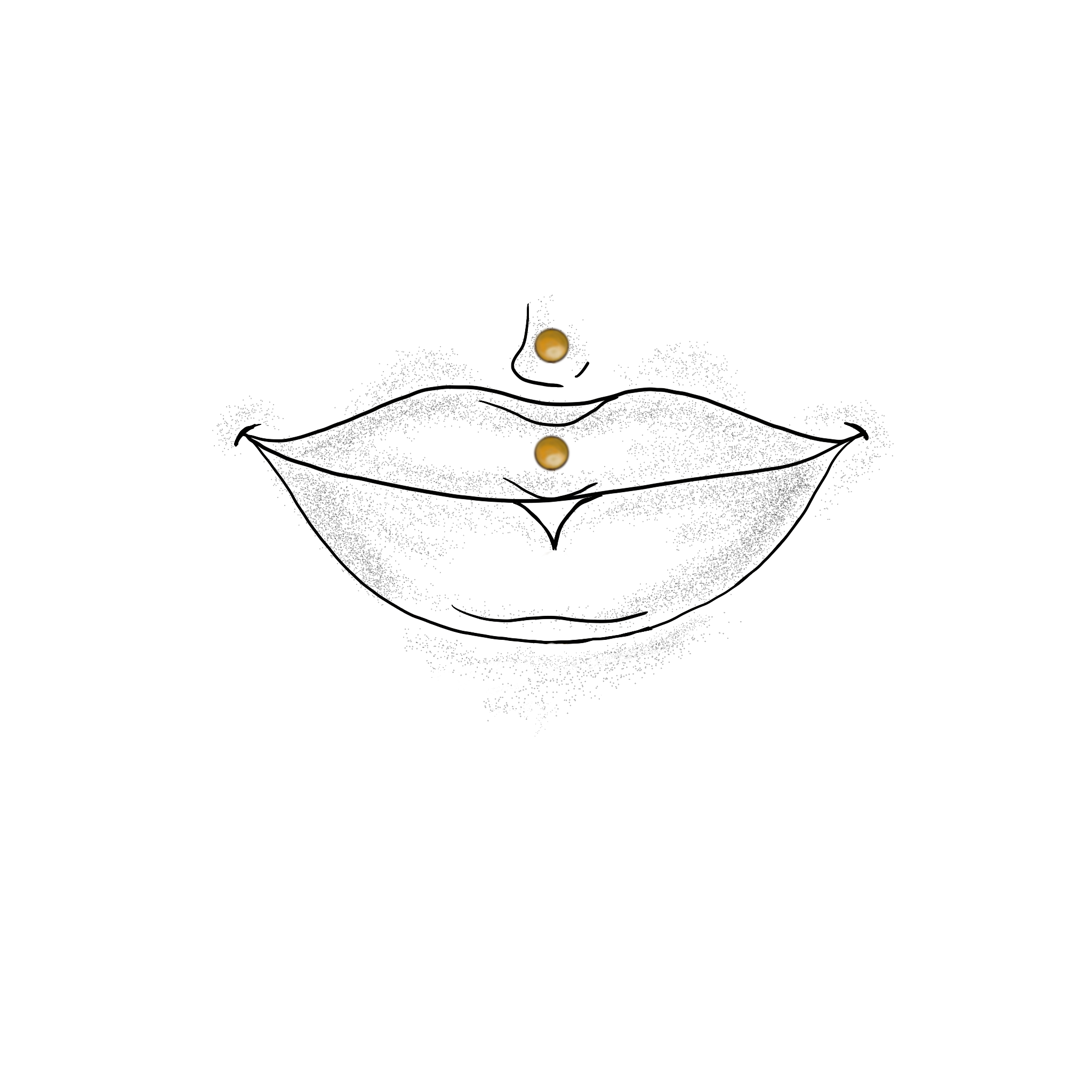 Das Medusa-Piercing sitzt mittig oberhalb der Oberlippe, direkt in der philtralen Rinne. Es ist ein zentrales Element und zieht den Blick auf die Lippenpartie.