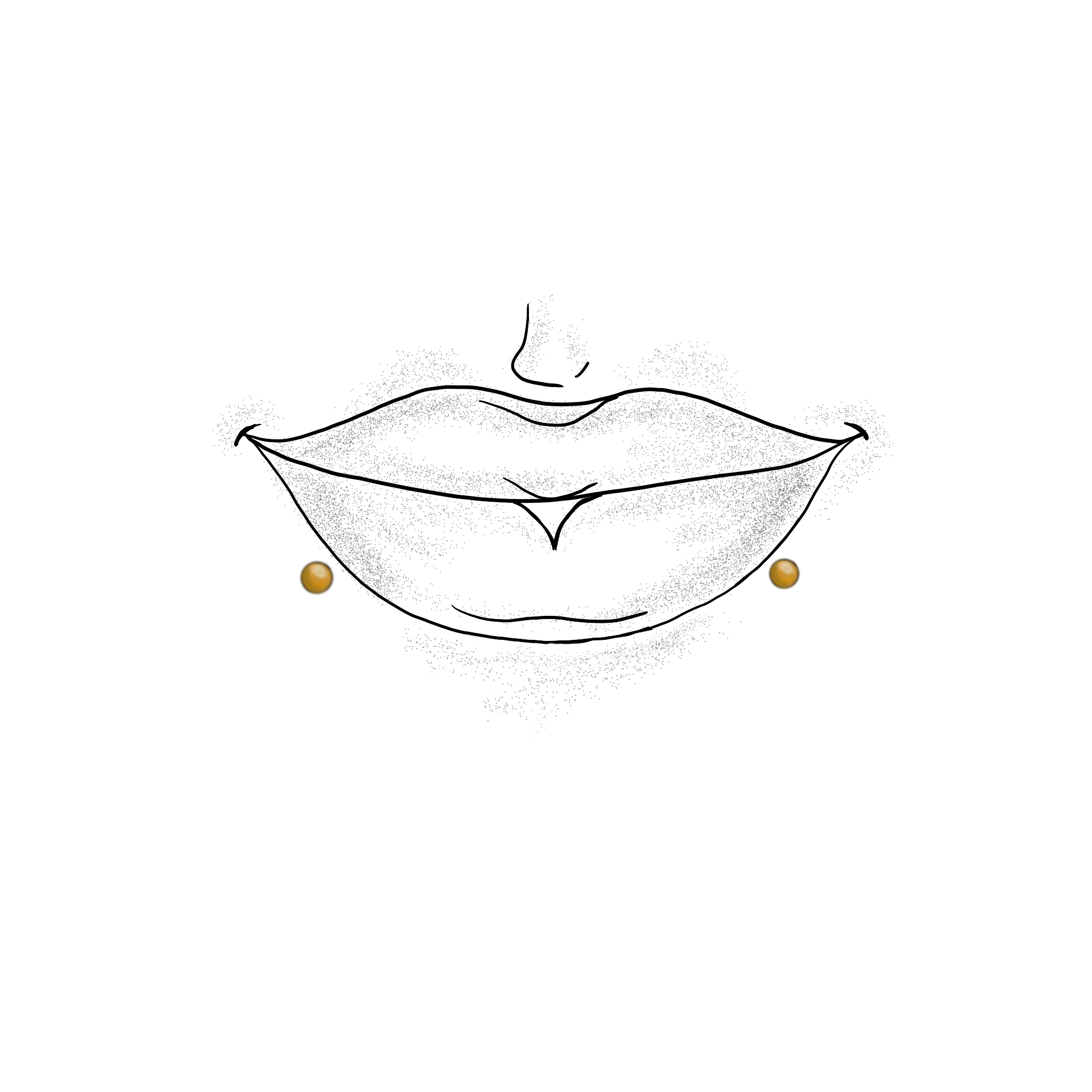 Ein Surface-Piercing in der Lippe wird horizontal auf der Lippenhaut platziert. Es kann individuell angepasst werden, um der natürlichen Form der Lippe zu folgen und einen einzigartigen Akzent zu setzen.