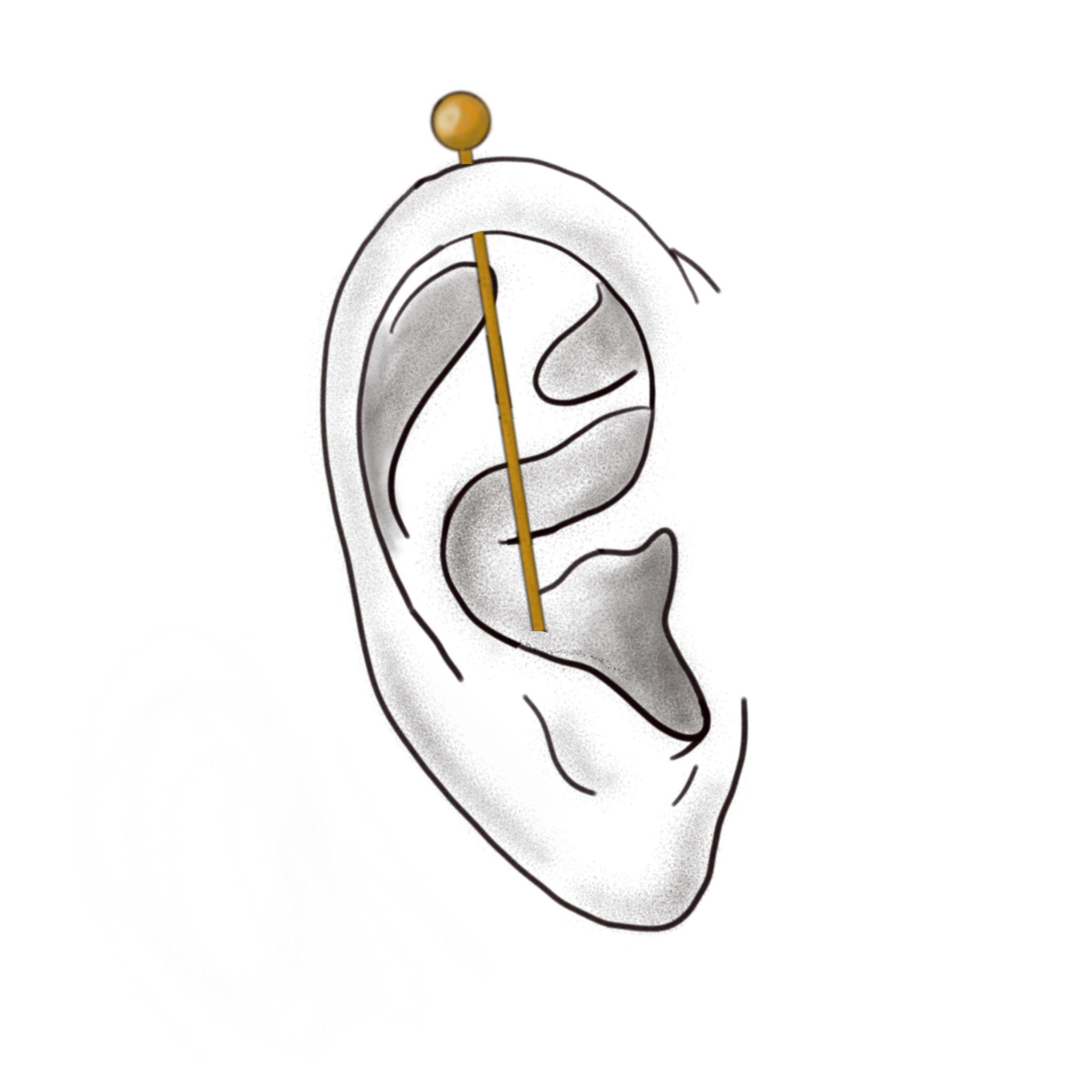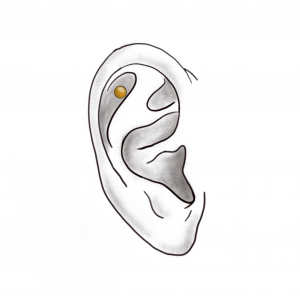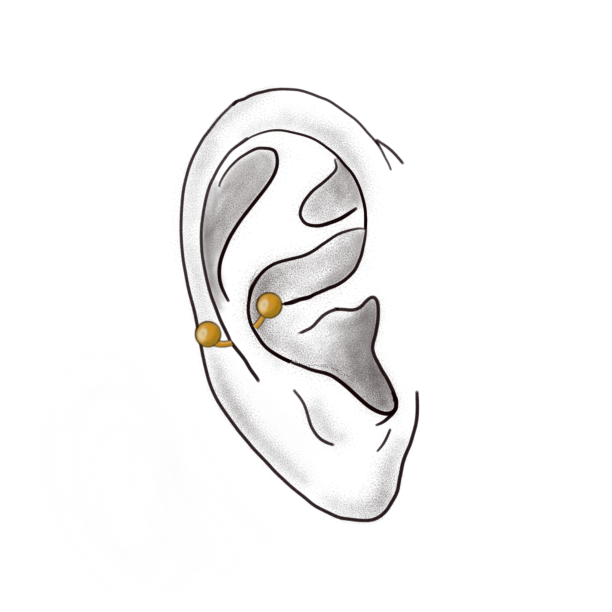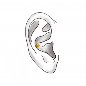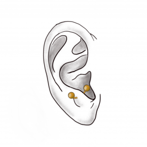 Das Snug-Piercing wird horizontal durch die innere Ohrkante gestochen, im mittleren Bereich des Ohres. Es ist markant und modern.