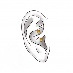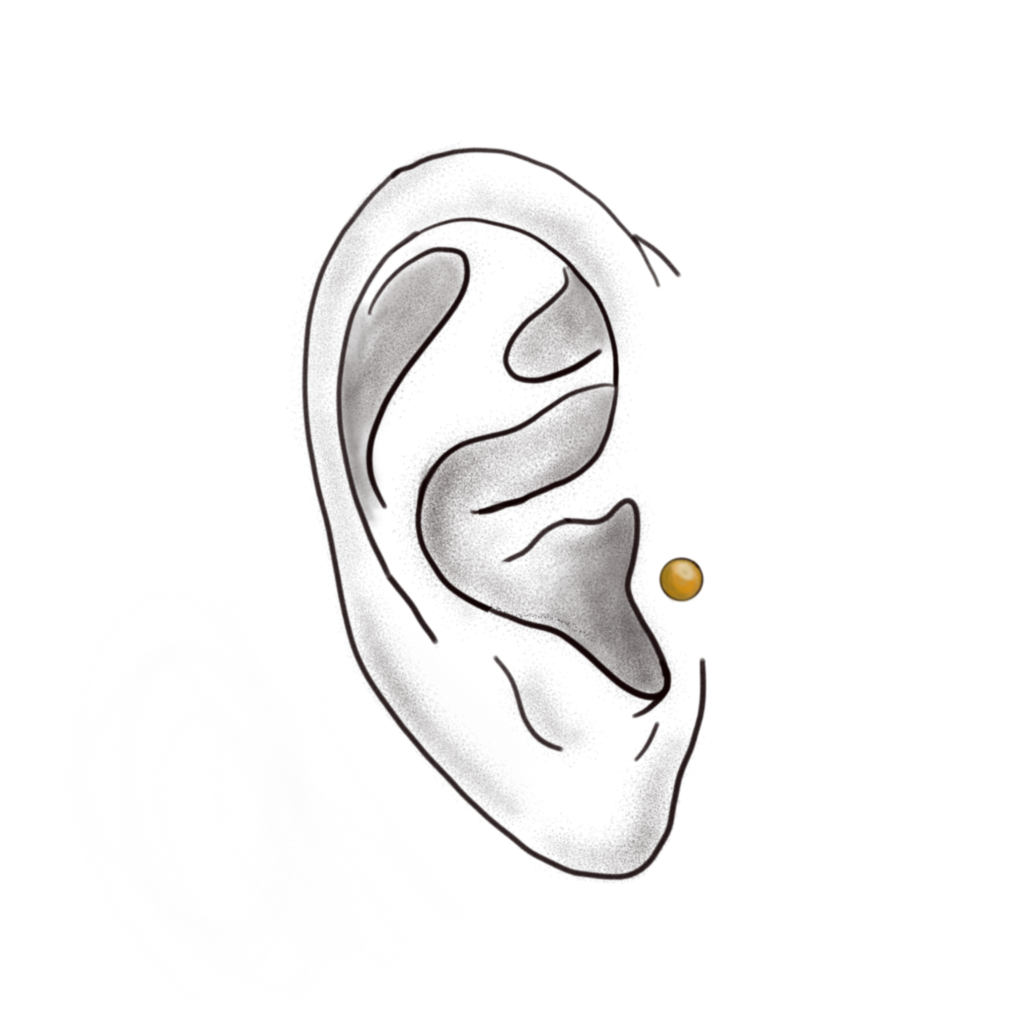 Das Anti-Tragus-Piercing wird durch den Knorpel gegenüber des Tragus, oberhalb des Ohrläppchens, gestochen. Es bietet eine außergewöhnliche Möglichkeit, das Ohr kreativ zu gestalten.