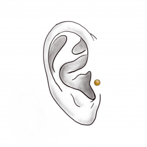 Das Tragus-Piercing wird durch den kleinen Knorpel vor dem Gehörgang gestochen. Es ist ein dezentes Piercing, das sich hervorragend mit anderen Schmuckstücken kombinieren lässt.