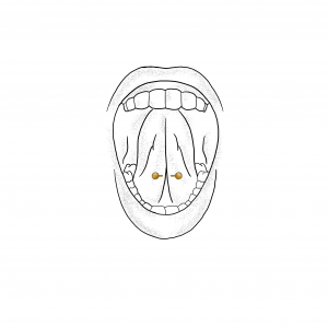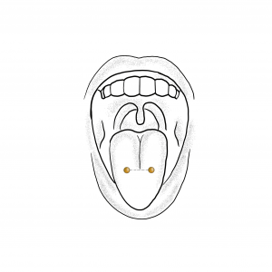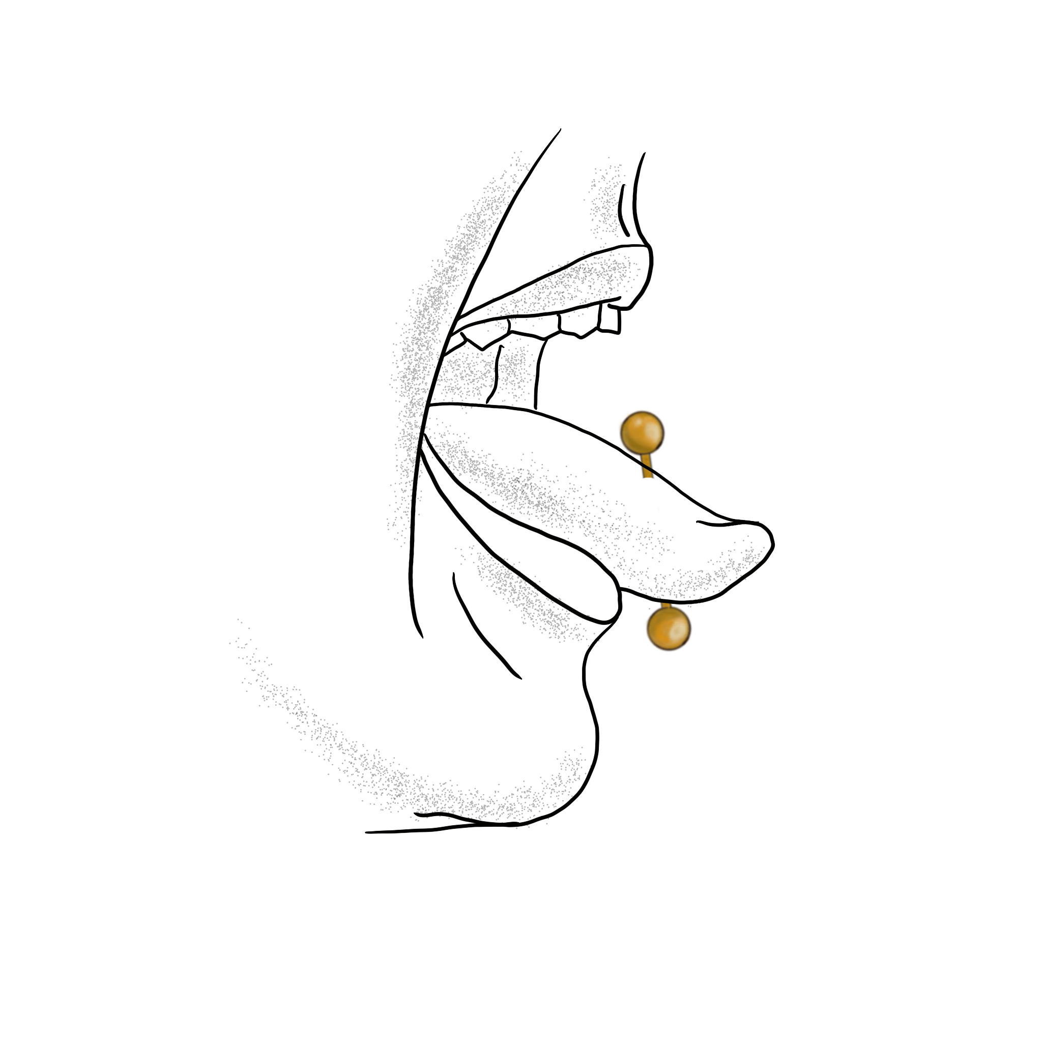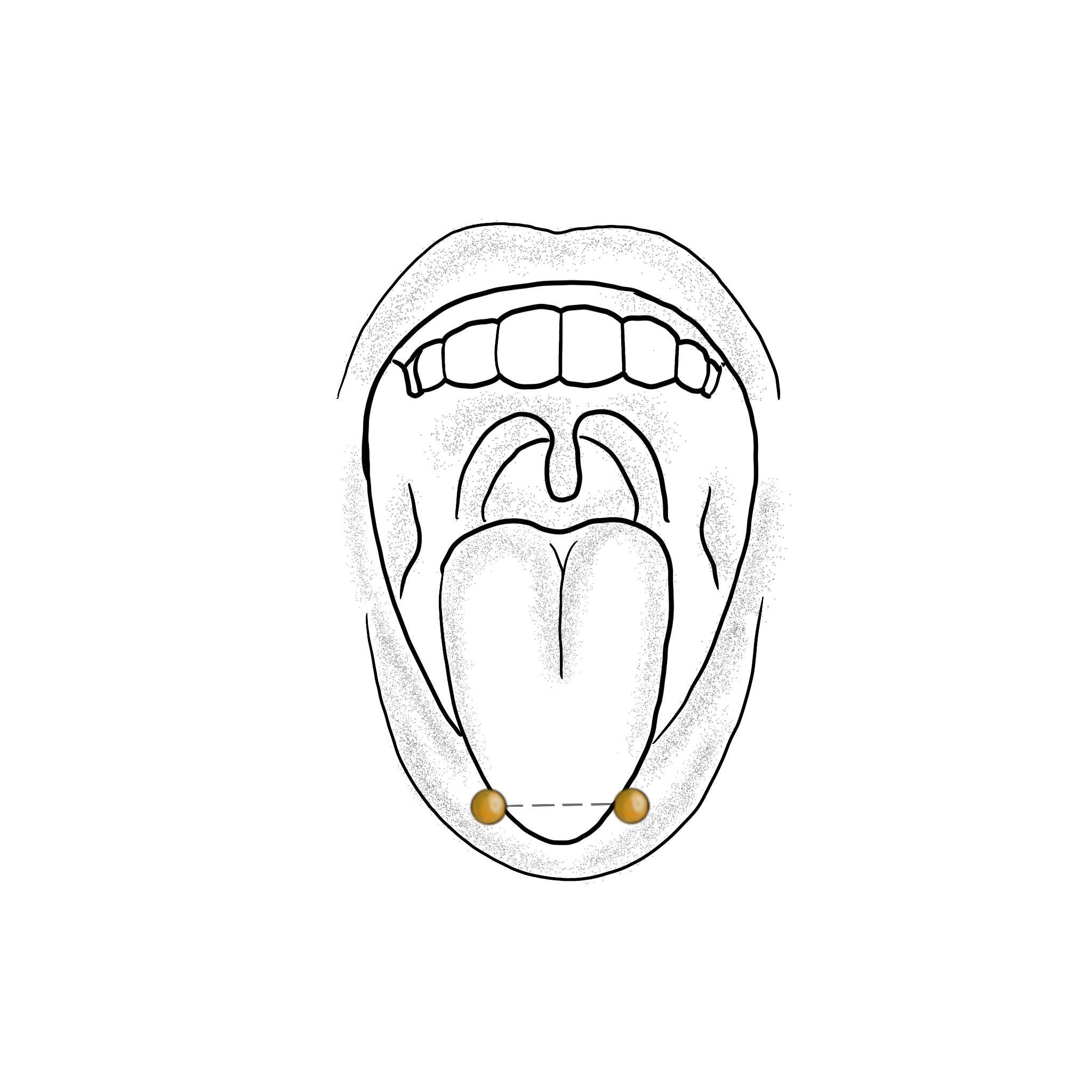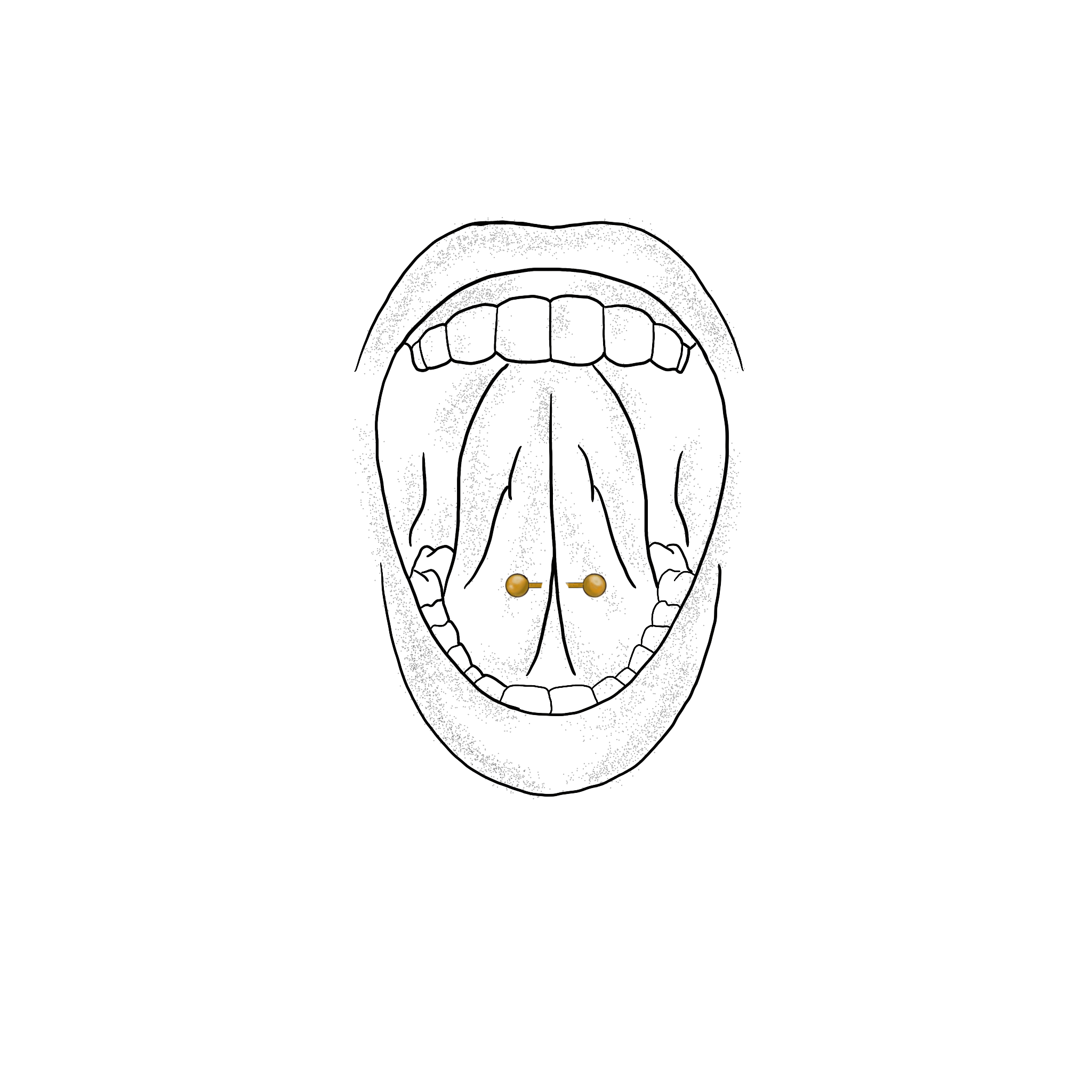 Das Zungenband-Piercing wird durch das Zungenbändchen unterhalb der Zunge gestochen. Es ist diskret und perfekt für dezente Akzente.