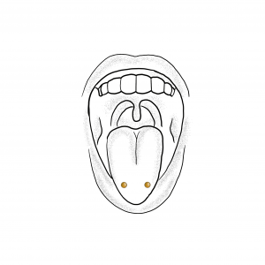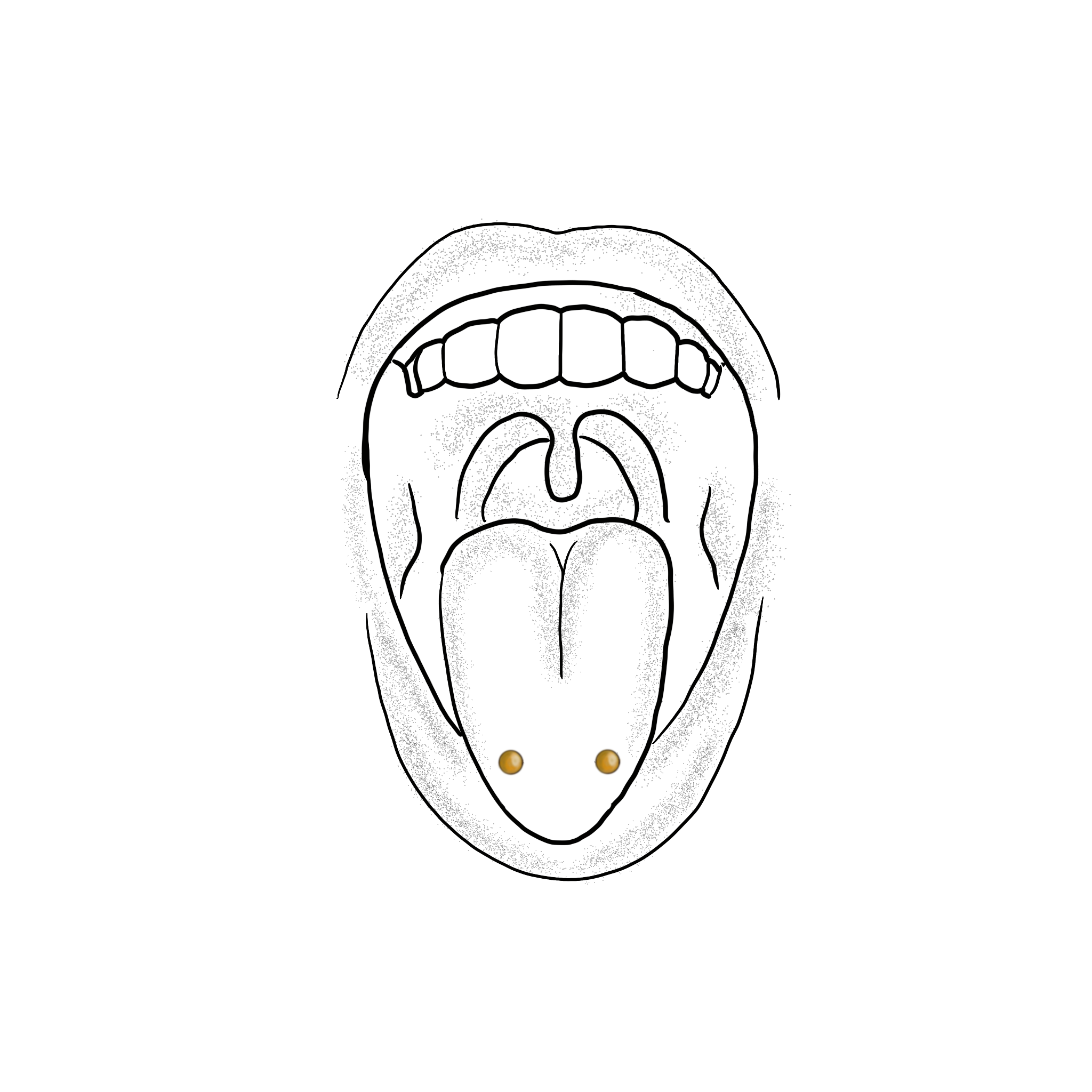 Das Scoop-Piercing verläuft horizontal durch die Zungenoberfläche, ohne die Zunge vollständig zu durchstechen.